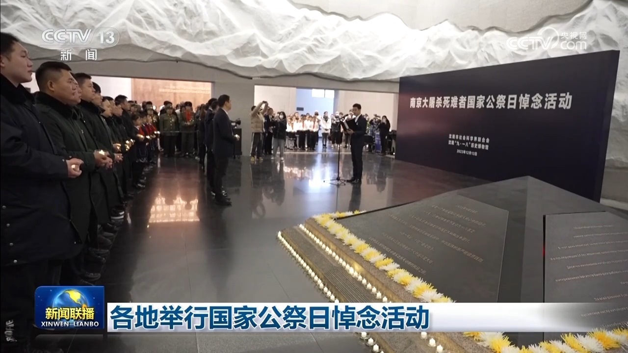 央視網(wǎng)消息(新聞聯(lián)播):今天(12月13日),各地舉行國家公祭日悼念活動,銘記歷史、珍愛和平,凝聚奮進力量。