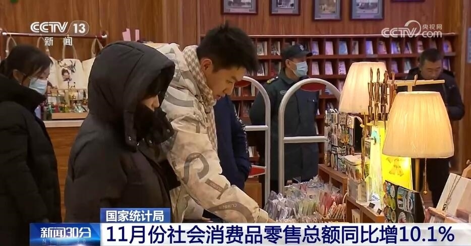 市場(chǎng)銷(xiāo)售增勢(shì)較好,服務(wù)消費(fèi)持續(xù)較快增長(zhǎng),11月份,社會(huì)消費(fèi)品零售總額同比增長(zhǎng)10.1%,比上月加快2.5個(gè)百分點(diǎn)。