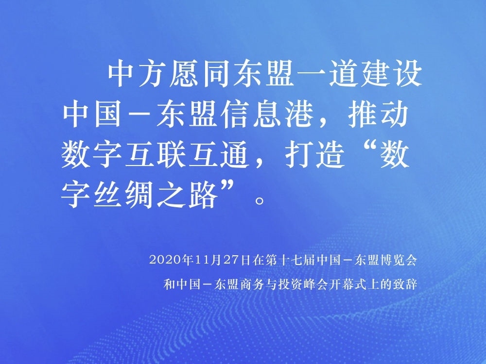2014年,中國提出與東盟十國共建“中國-東盟信息港”倡議,得到了東盟各國的積極響應(yīng)。在第十七屆中國-東盟博覽會和中國-東盟商務(wù)與投資峰會開幕式上,習(xí)近平總書記提出“提升科技創(chuàng)新,深化數(shù)字經(jīng)濟(jì)合作”的重要倡議,表示中方愿同東盟各國攜手合作,抓住新一輪科技革命和產(chǎn)業(yè)變革機(jī)遇,發(fā)揮互補(bǔ)優(yōu)勢,聚焦合作共贏。