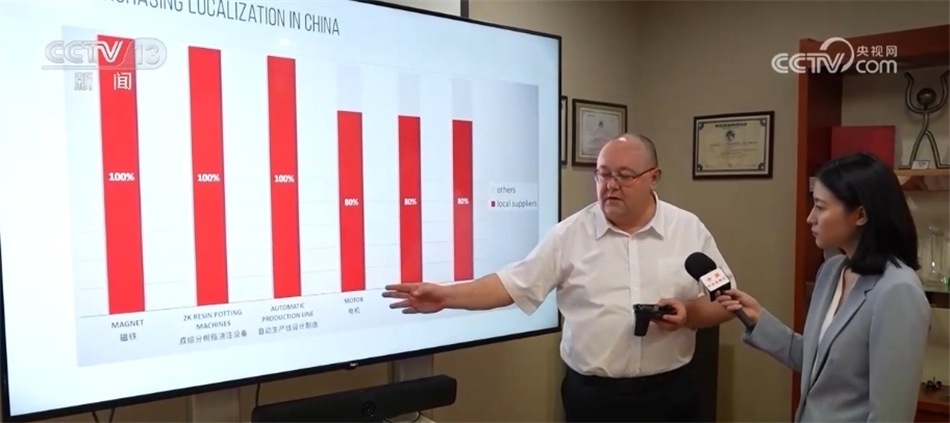 艾菲汽車零部件亞太區(qū)首席執(zhí)行官 埃里克·勒邁爾:從這張圖表中可以看出,就電機(jī)而言,我們使用的電機(jī)有80%來(lái)自當(dāng)?shù)毓?yīng)商,磁鐵則100%來(lái)自當(dāng)?shù)毓?yīng)商,當(dāng)?shù)毓?yīng)商質(zhì)量好、價(jià)格低。