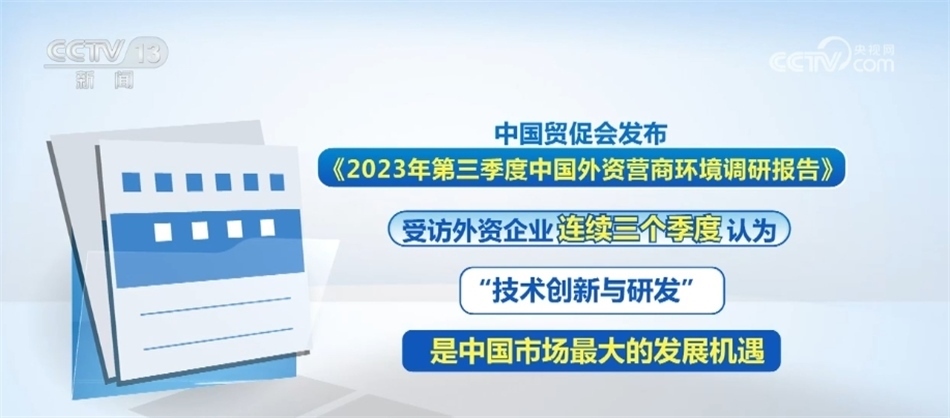 布局未來(lái),如今,越來(lái)越多外資企業(yè)正在從“在中國(guó)制造”走向“在中國(guó)創(chuàng)造”。中國(guó)德國(guó)商會(huì)的調(diào)查報(bào)告就顯示,53%的德國(guó)企業(yè)計(jì)劃在未來(lái)兩年內(nèi)增加在中國(guó)本土化研發(fā)的職能;而中國(guó)貿(mào)促會(huì)發(fā)布的《2023年第三季度中國(guó)外資營(yíng)商環(huán)境調(diào)研報(bào)告》則顯示,受訪外資企業(yè)連續(xù)三季度認(rèn)為“技術(shù)創(chuàng)新與研發(fā)”是中國(guó)市場(chǎng)最大的發(fā)展機(jī)遇。