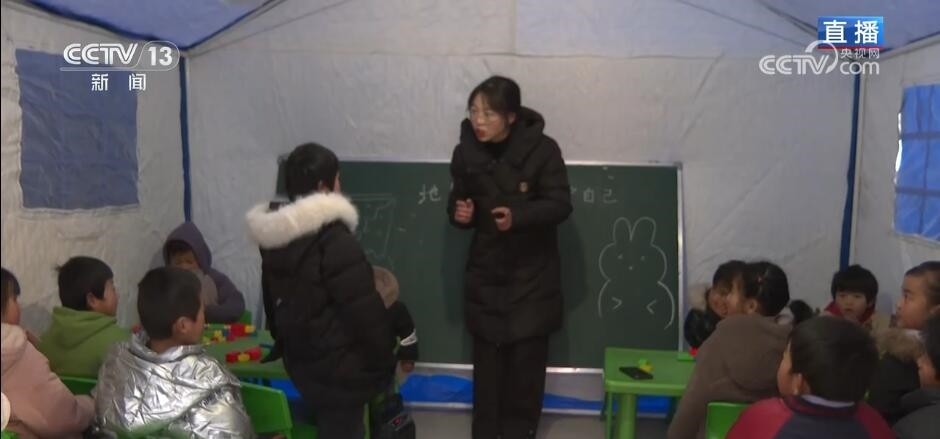 總臺記者 馬麗:我現(xiàn)在是在積石山縣前嶺小學(xué)附屬幼兒園。目前,這里也是前嶺村的一個集中安置點(diǎn)。地震發(fā)生后,這里的主體校舍沒有明顯受損,并且校內(nèi)廣場有大面積的空地,所以被作為了臨時安置點(diǎn),來安置附近的40余名村民。其中,有近30名是小學(xué)生和幼兒園的小朋友。他們有些是村民自己的孩子,有些是附近親戚家的孩子??紤]到這里的環(huán)境更加穩(wěn)定和保暖,孩子們也被聚集到了這里?,F(xiàn)在,正是早起的時間,在安置點(diǎn)也升起了裊裊炊煙,陽光從遠(yuǎn)處照了過來。