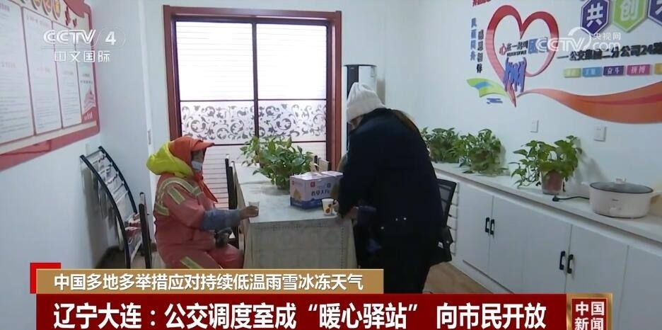 在遼寧大連,嚴寒天氣下,一些臨近居民區(qū)、菜市場、商業(yè)區(qū)的公交調(diào)度室臨時向市民開放,供路過市民歇腳、暖身。