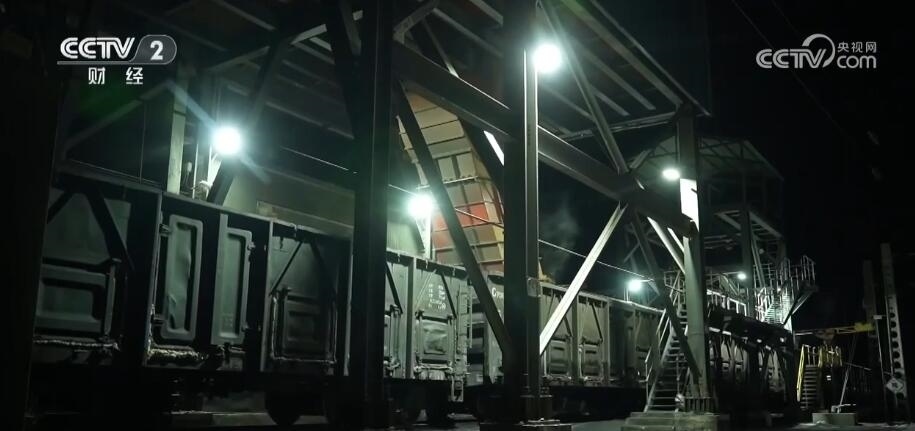 總臺(tái)記者 李大杰:我現(xiàn)在所在的位置是靖邊北站的一個(gè)煤炭裝運(yùn)點(diǎn),我身后正在運(yùn)行的快速裝車系統(tǒng)正在將煤炭源源不斷地注入我身旁這列正在緩慢行駛的貨運(yùn)列車當(dāng)中,裝滿這一節(jié)車廂大概需要1分鐘,所有55節(jié)車廂全部裝滿大約能載煤3600噸。
