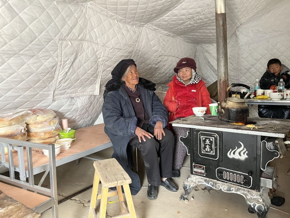 張郭家村是個(gè)小村,總共才350多人。地震發(fā)生后,全村絕大多數(shù)房屋受損,通村道路遭遇塌方,萬(wàn)幸無(wú)人遇難。群眾積極自救互救,州縣鄉(xiāng)三級(jí)干部下沉,工作有序開展。19日晚至20日晨,部隊(duì)官兵徹夜為村上搭建起26頂帳篷。零下十幾度的夜晚,群眾再也不用在戶外燒柴取暖了。