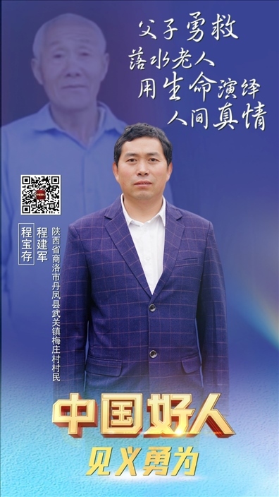 程寶存,男,1953年8月生;程建軍,男,1978年6月生。二人為父子關(guān)系,系陜西省商洛市丹鳳縣武關(guān)鎮(zhèn)梅莊村村民。2021年9月,父子兩人協(xié)力救助落水老人,父親程寶存不幸被水沖走獻(xiàn)出了寶貴生命。程建軍說:“這件事誰遇到都會(huì)去做的,我相信我爸也不會(huì)后悔自己的選擇?!?/p>