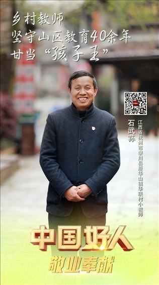 石武蓀,男,1962年5月生,中共黨員,江西省撫州市黎川縣原華山鎮(zhèn)華聯(lián)村小教師。參加工作40多年來,他扎根偏遠(yuǎn)山區(qū),數(shù)次放棄進(jìn)城機(jī)會(huì),默默堅(jiān)守在離縣城30多公里的大山里,把自己的青春年華無私地奉獻(xiàn)給了山區(qū)的百姓和孩子們。