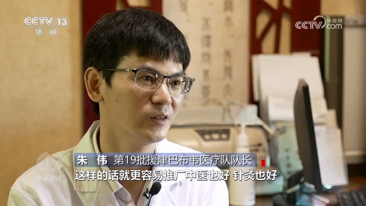 第19批援津巴布韋醫(yī)療隊隊長朱偉:“病人到60個的時候,工作強(qiáng)度太大了。后來我就慢慢給他們預(yù)約,培養(yǎng)當(dāng)?shù)氐尼樉娜瞬?,這樣就更容易推廣中醫(yī)也好,針灸也好。去年,我在那里就培養(yǎng)了十個學(xué)員,他們自己能做。當(dāng)?shù)匾彩强吹街嗅t(yī)針灸的效果,所以他們很多人想學(xué)?!?/p>