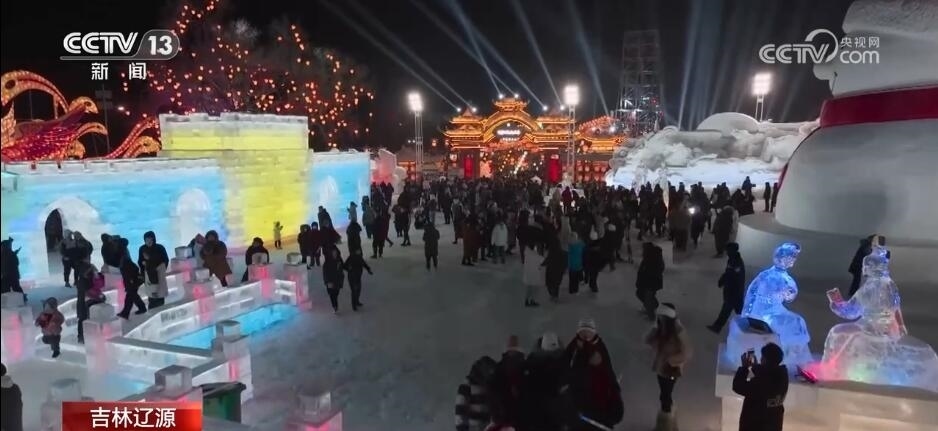 在吉林遼源,夜幕剛剛降臨,城市就被璀璨的燈火點(diǎn)亮。當(dāng)?shù)匕阎袊?guó)傳統(tǒng)元素和冰雪相融合,推出大型夜游冰雪主題樂(lè)園,吸引很多游客沉浸式體驗(yàn)冰雪魅力。置身3萬(wàn)平方米的冰雪主題樂(lè)園里,既有年年有余、萬(wàn)馬奔騰等中國(guó)節(jié)慶元素的雪雕,也有晶瑩剔透、絢麗多彩的各類(lèi)大型冰雕。園區(qū)里還專(zhuān)門(mén)在雪地上搭起動(dòng)感、炫彩的舞臺(tái),引領(lǐng)游客們一起互動(dòng)。