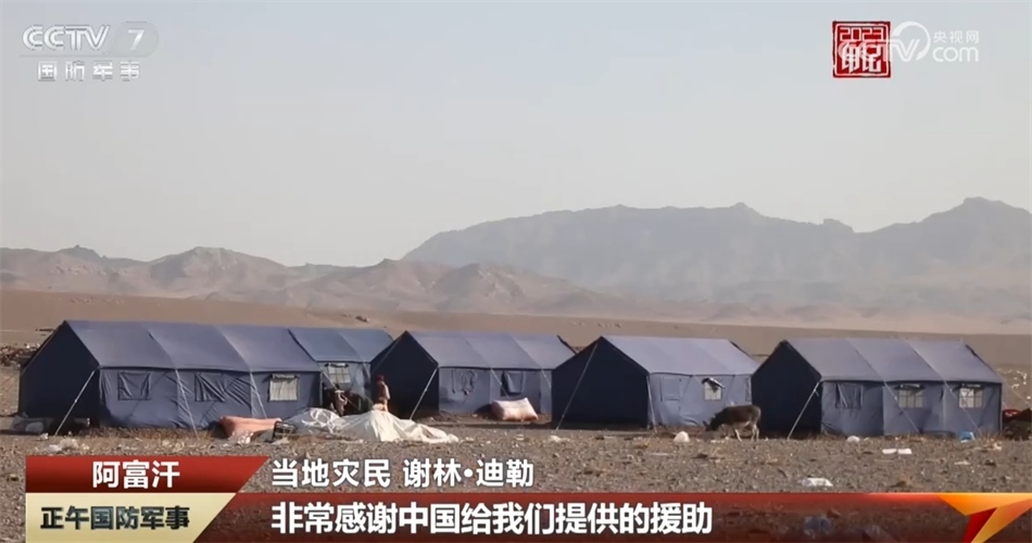 2023年10月,阿富汗赫拉特省連續(xù)發(fā)生多次6級以上強震,中國空軍兩架運-20運輸機搭載著中國政府和中國紅十字會提供的近50噸人道主義救援物資飛往阿富汗。在受地震影響最嚴重的赫拉特省津達詹區(qū),一頂頂中國援助的藍色帳篷挺立在廢墟旁的空地上。