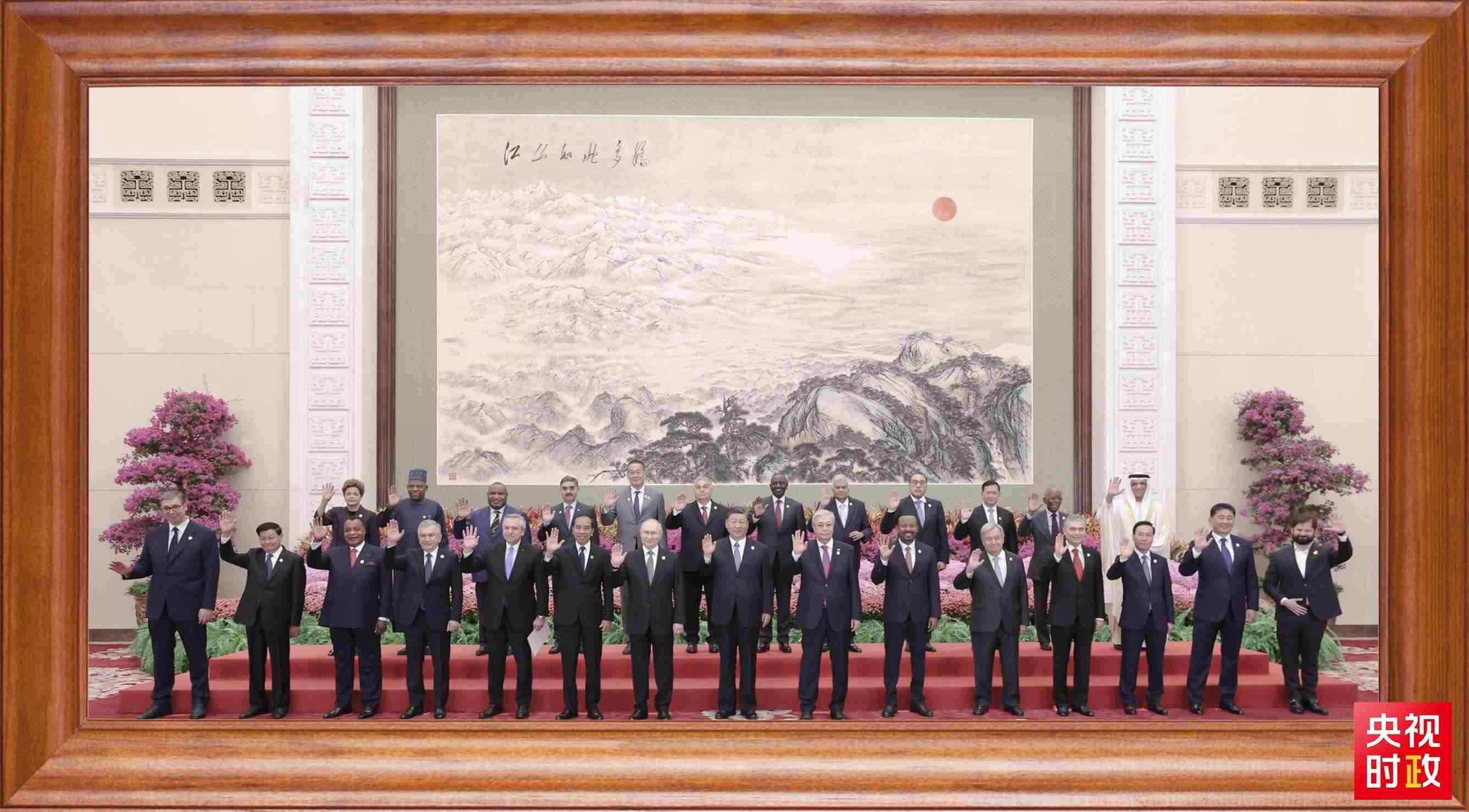 2023年10月18日,習(xí)近平主席在北京人民大會(huì)堂出席第三屆“一帶一路”國(guó)際合作高峰論壇開幕式。會(huì)前,習(xí)近平同出席高峰論壇的外國(guó)國(guó)家元首、政府首腦和國(guó)際組織負(fù)責(zé)人等國(guó)際貴賓集體合影。