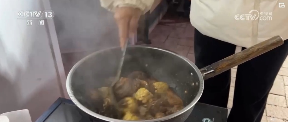 2023年12月31日晚上,孩子們的笑聲、小呲花的噼啪聲點(diǎn)燃了積石山縣劉集鄉(xiāng)團(tuán)結(jié)村安置點(diǎn)過節(jié)的氛圍。電視打開了,安置點(diǎn)的群眾圍著篝火一起看跨年晚會。而此時,婦女們也在忙著,燉牛肉、包餃子、炸果子,香氣在安置點(diǎn)彌漫開來。