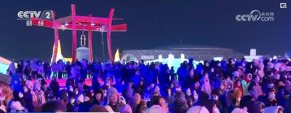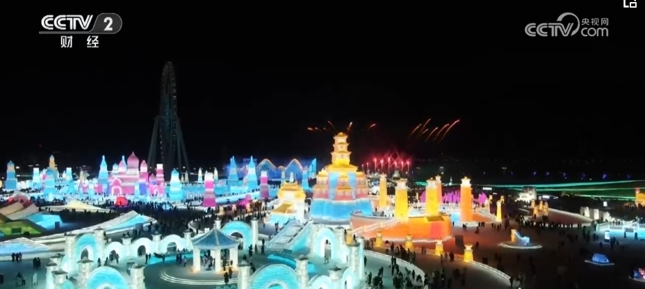 總臺(tái)央視記者 郭晉華:在這個(gè)冰雕玉砌的世界,一簇簇焰火映襯著流光溢彩的冰雕建筑群,帶著人們對新年的祈盼噴薄而出。哈爾濱冰雪大世界,雖然現(xiàn)在室外氣溫達(dá)到了零下20多度,但是大家冰雪跨年的熱情卻是點(diǎn)燃了全場,來自全國各地的游客在這場狂歡中一起迎接新年的到來。