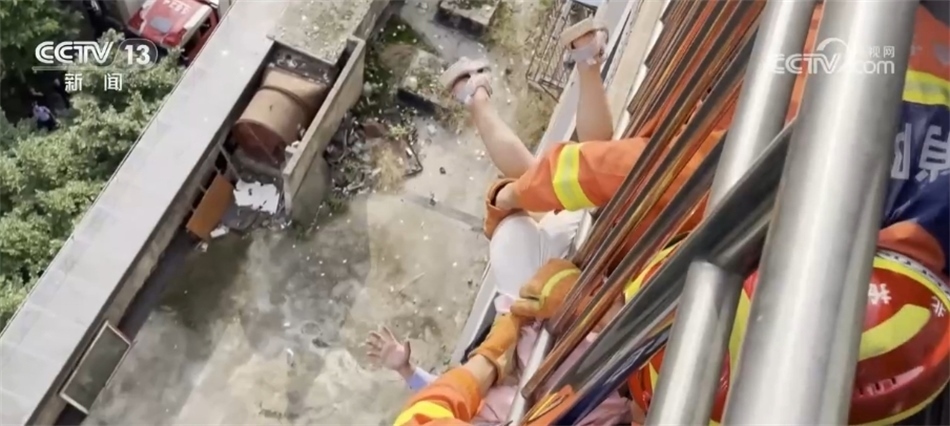 七層樓外,沒有任何防護措施,僅靠雙手雙腳,費關雙終于爬到了小女孩兒腳下的陽臺,他先嘗試將小女孩兒救下,但是孩子的頭被欄桿卡住,沒有辦法救出,他只好用力托舉著孩子的雙腿,避免孩子因頭部被卡而窒息。此時,樓下聚集的人越來越多,大家紛紛伸出援手。