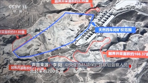 中央生態(tài)環(huán)境保護督察組督察人員李陽:“越界開采了,合起來有200多畝?!?/p>