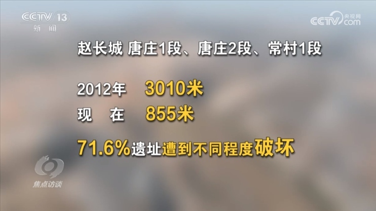 數(shù)據(jù)顯示:2012年,河南省認定趙長城唐莊1段、唐莊2段、常村1段,三段長城實際共存在3010米,而現(xiàn)在,遺址僅存在855米,71.6%長度的遺址已遭到不同程度破壞,令人無比痛心。