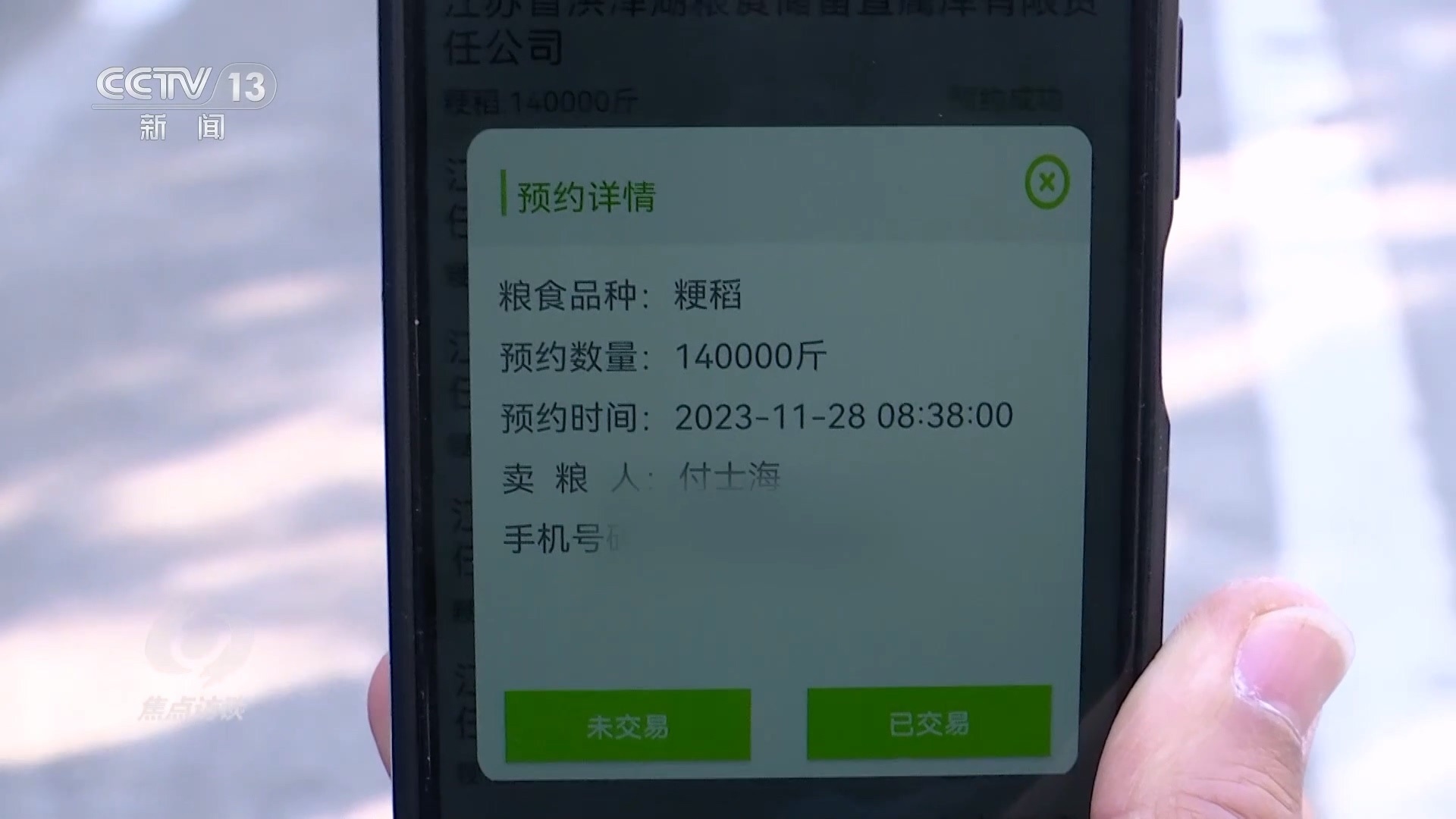 在江蘇省糧食部門研發(fā)的這個“滿意蘇糧”應(yīng)用程序里,不僅能夠?qū)崟r查詢收購價格、糧庫倉容狀態(tài),還能預(yù)約賣糧。通過手機看到這幾天的價格比較合適,付士海也準(zhǔn)備將自己的糧食出手了。