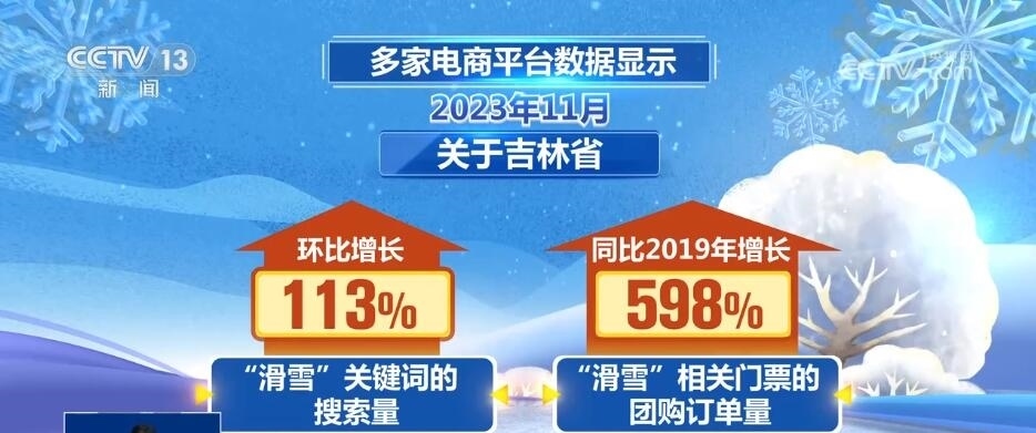 多家電商平臺數(shù)據(jù)顯示,2023年11月,關(guān)于吉林省“滑雪”關(guān)鍵詞的搜索量環(huán)比增長113%,“滑雪”相關(guān)門票的團(tuán)購訂單量同比2019年增長了598%。