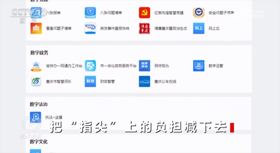 工作重心向基層服務(wù)轉(zhuǎn)變,才能切實(shí)看到為基層減負(fù)的實(shí)效。2021年,重慶市一體化、智能化、數(shù)字化政務(wù)工作平臺“渝快政”正式發(fā)布?!坝蹇煺痹谌蟹秶鷥?nèi)實(shí)現(xiàn)了上下層級、橫向跨部門之間的協(xié)同,一個(gè)“渝快政”App就可以支持過去40多項(xiàng)高頻次的政務(wù)辦公應(yīng)用,過去各部門App的相應(yīng)功能、各種工作群都整合在了“渝快政”一個(gè)App里面。一表通、“141”基層智治平臺也已經(jīng)接入了“渝快政”,正在向全市推廣。現(xiàn)在,文勇手機(jī)里的53個(gè)工作群已經(jīng)解散,郝歡手機(jī)里十幾個(gè)部門App也已經(jīng)被整合到“渝快政”。?