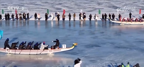 14日下午2點(diǎn),在松花江哈爾濱江段已經(jīng)封凍的江面上,一場別開生面的冰上龍舟賽在數(shù)千名觀眾的注視下上演,冰上劃龍舟,對于遠(yuǎn)道而來的廣東順德龍舟隊(duì)隊(duì)員們來說卻是前所未有的體驗(yàn)。