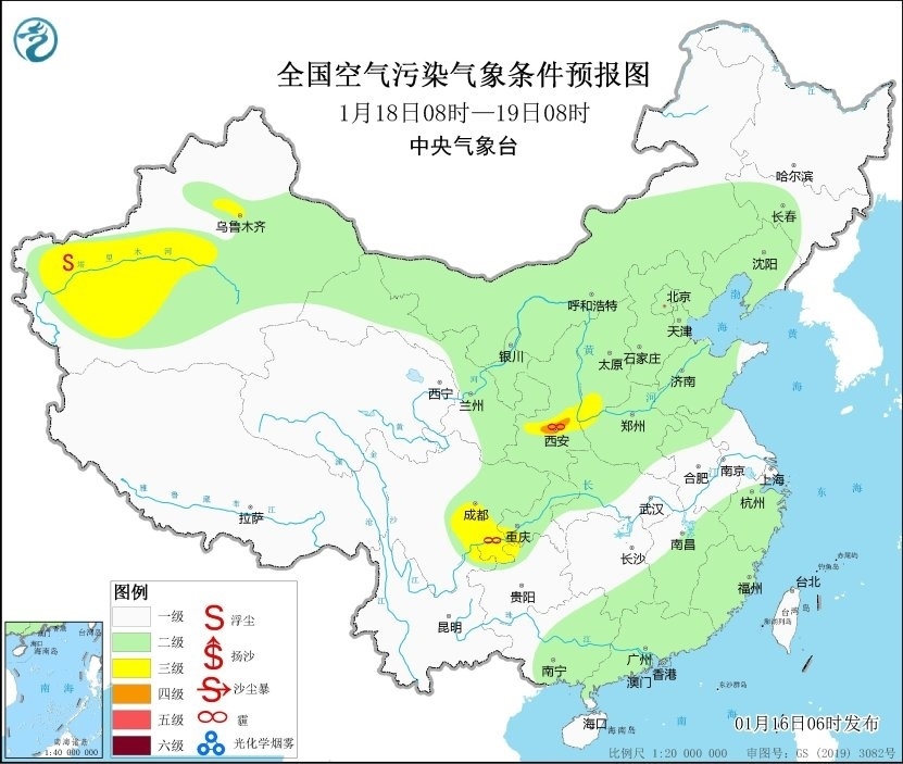 16日至18日,區(qū)域大氣擴散條件一般,山西南部、陜西關中等地的部分地區(qū)有輕至中度霾。