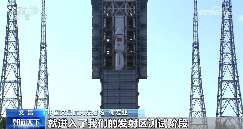 中國文昌航天發(fā)射場 何宏業(yè):船箭組合體轉(zhuǎn)到發(fā)射區(qū)之后,就進入了發(fā)射區(qū)測試階段,主要完成相關(guān)的器件連接、貯箱的氣檢和置換以及電氣系統(tǒng)的功能檢查等加注發(fā)射的準備工作。