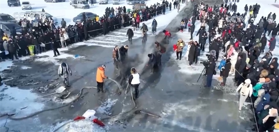 在綏化安達(dá)古大湖的冰面上,花鰱錦鯉騰躍而出,打魚郎們載歌載舞,游客們觀捕魚、拍頭魚、品鮮魚。