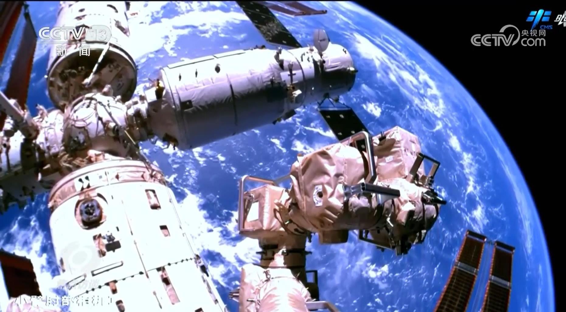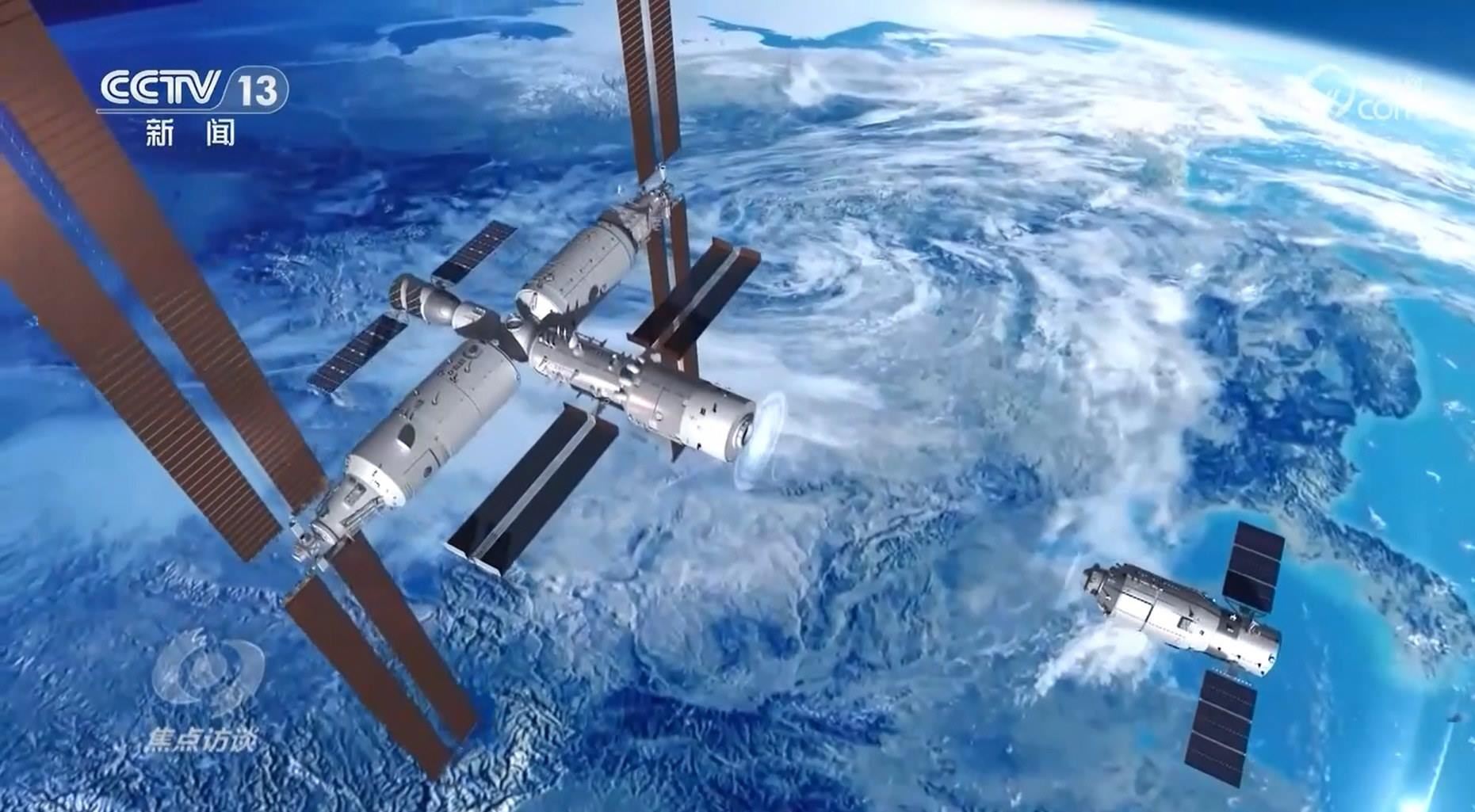 1月19日上午,神舟十七號航天員在地面的支持配合下,打開天舟七號貨運飛船的艙門,接收為他們送來的最新貨物。