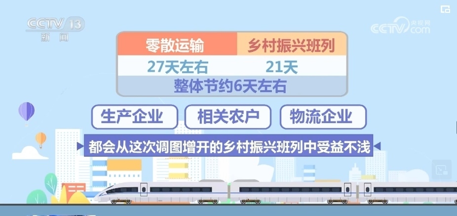 通過(guò)以上的對(duì)比不難看出,零散運(yùn)輸全流程需要27天左右,鄉(xiāng)村振興班列需要21天,整體節(jié)約6天左右。不管是對(duì)于生產(chǎn)企業(yè)以及相關(guān)農(nóng)戶(hù),還是對(duì)于物流企業(yè),都會(huì)從這次調(diào)圖增開(kāi)的鄉(xiāng)村振興班列中受益不淺。