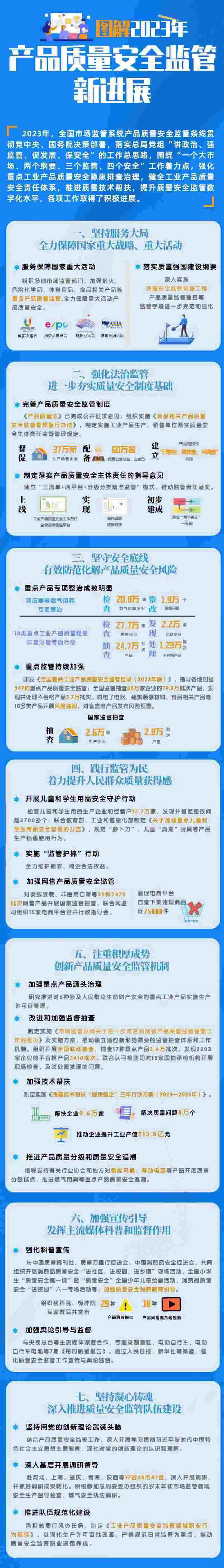 開展重點產(chǎn)品質(zhì)量安全隱患排查治理行動——以危險化學(xué)品、電動自行車、煙花爆竹等產(chǎn)品為重點,緊盯集中產(chǎn)區(qū)、農(nóng)村市場和電商平臺,以及中小微企業(yè)和個體工商戶,建立重點領(lǐng)域、重點產(chǎn)品質(zhì)量安全風(fēng)險隱患排查治理長效機制。