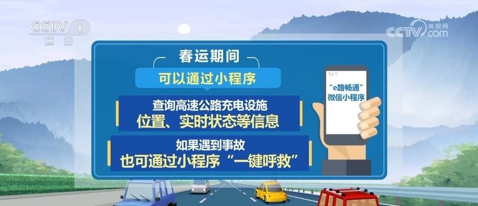 為提升今年春運(yùn)服務(wù),交通運(yùn)輸部還上線“e路暢通”微信小程序,春運(yùn)期間,大家可以通過小程序,查詢高速公路充電設(shè)施位置、實時狀態(tài)等信息,如果遇到事故,也可通過小程序“一鍵呼救”。