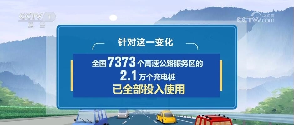 今年公路出行還有一個新變化,就是在小客車出行當(dāng)中,新能源車輛占比增多。針對這一變化,目前,全國7373個高速公路服務(wù)區(qū)的2.1萬個充電樁已全部投入使用。