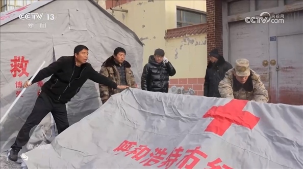 甘肅省臨夏州積石山縣石塬鎮(zhèn)振興社區(qū)副主任孔德義:“他發(fā)揮的作用特別大,因為他畢竟是部隊出身,身體素質(zhì)好,搭帳篷這一塊特別強。有他在的話,5分鐘就能完成一個,效率特別高。還有像如何規(guī)避余震帶來的傷害,他先給先鋒隊講解,我們再逐個分散開給群眾講解,等同于一個專業(yè)人士帶領(lǐng)著先鋒隊去幫助更多的群眾,去服務(wù)群眾。”