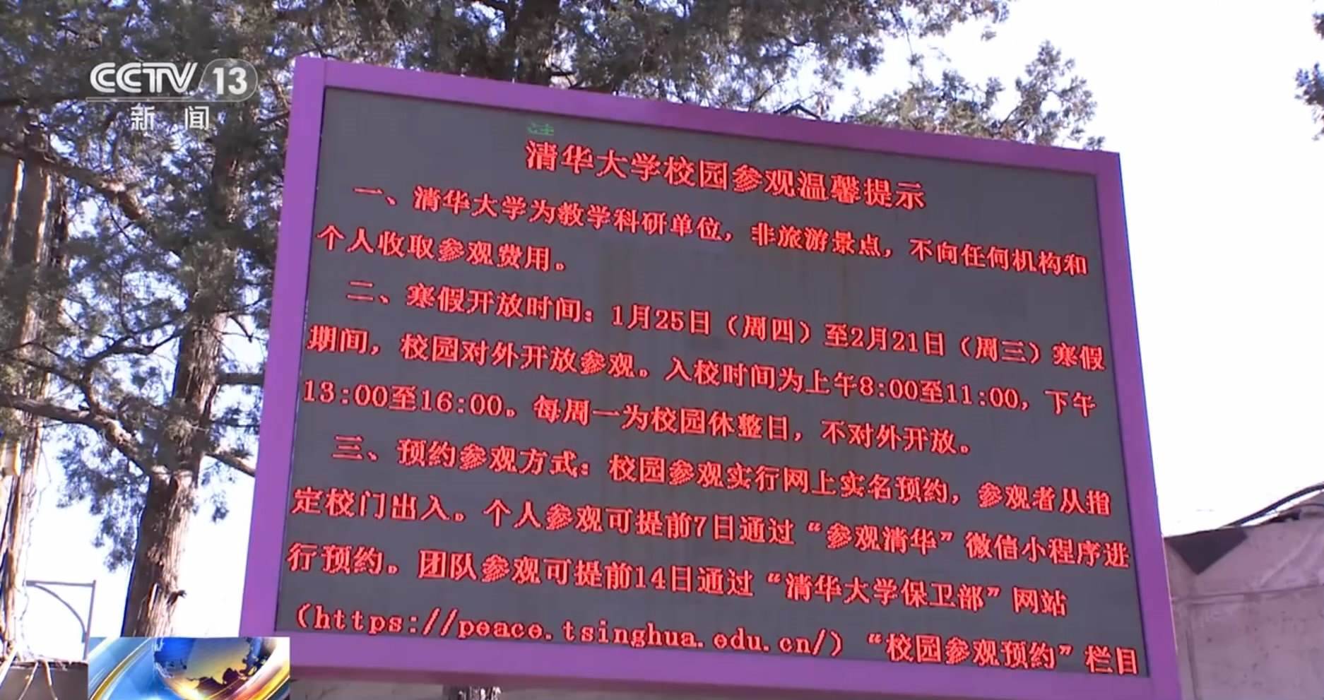 清華大學保衛(wèi)部 張運騰:因為寒假的時候,學校仍然有一些教學科研的任務還在進行,到一些教室或者實驗室周邊,希望能夠輕音輕語,文明參觀。我們也在這里也特別倡導大家進入校園以后能夠遵守學校的管理的一些規(guī)定。