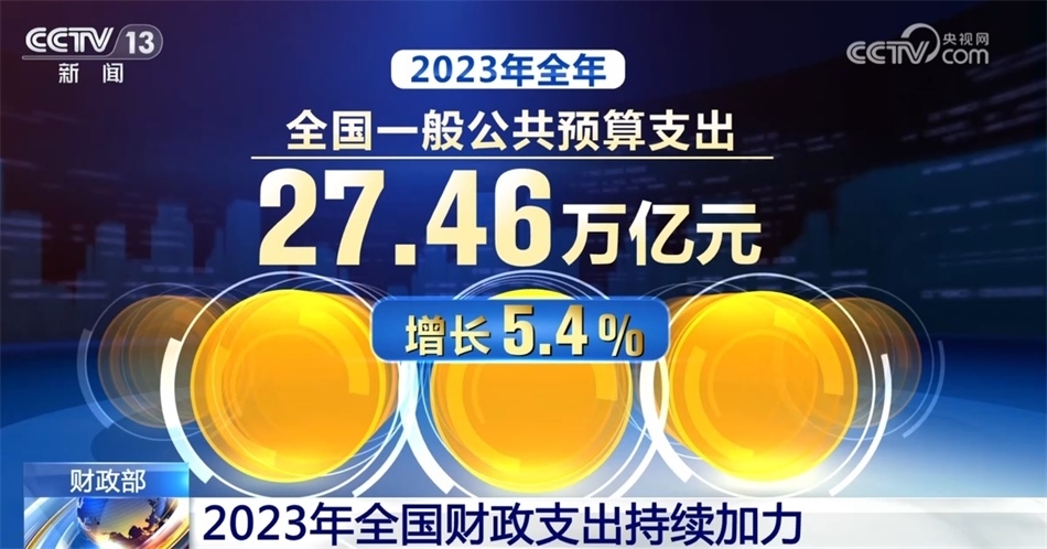 2023年,財(cái)政收入保持恢復(fù)性增長(zhǎng)態(tài)勢(shì),財(cái)政支出持續(xù)加力。具體來看,去年年初,財(cái)政赤字率按3%安排。同時(shí),為支持災(zāi)后恢復(fù)重建和提升防災(zāi)減災(zāi)救災(zāi)能力,去年四季度增發(fā)1萬億元國債,全部通過轉(zhuǎn)移支付安排給地方。2023年全年,全國一般公共預(yù)算支出27.46萬億元,增長(zhǎng)5.4%。社會(huì)保障和就業(yè)、教育、科學(xué)技術(shù)、農(nóng)林水、城鄉(xiāng)社區(qū)等重點(diǎn)支出領(lǐng)域保障有力。