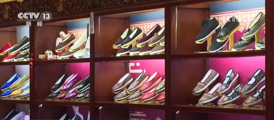 市民 白娜:確實(shí)挺新鮮的,看了一些鞋,包括清朝的。因?yàn)橛械男杏X(jué)設(shè)計(jì)感還是挺強(qiáng)的,年輕人慢慢能接受,它也很舒適。
