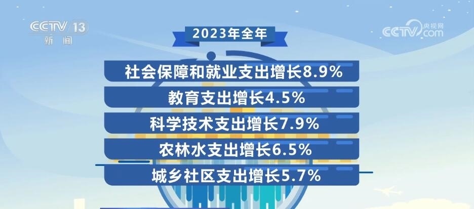 在我國,民生投入不僅總量大,而且增速也很可觀。比如2023年全年,社會保障和就業(yè)支出增長8.9%,教育支出增長4.5%,科學(xué)技術(shù)支出增長7.9%,農(nóng)林水支出增長6.5%,城鄉(xiāng)社區(qū)支出增長5.7%。