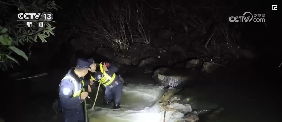 在廣西崇左的中越邊境線上,憑祥邊境管理大隊三色橋抵邊警務室執(zhí)勤民警在深夜里巡邊,檢查邊境防護設(shè)施,遇到湍急的溪流,挽起褲腳涉水而過。