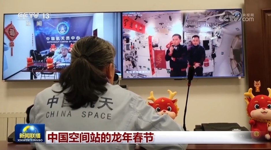 除夕當(dāng)天,航天員湯洪波、唐勝杰、江新林特意穿上了喜慶的“祥云服”,掛福字、貼年畫,在天和核心艙、問天實(shí)驗(yàn)艙、夢天實(shí)驗(yàn)艙3個(gè)艙段都貼起了春聯(lián),裝扮得年味十足,同時(shí)不忘給地面支持團(tuán)隊(duì)送上新春祝福。