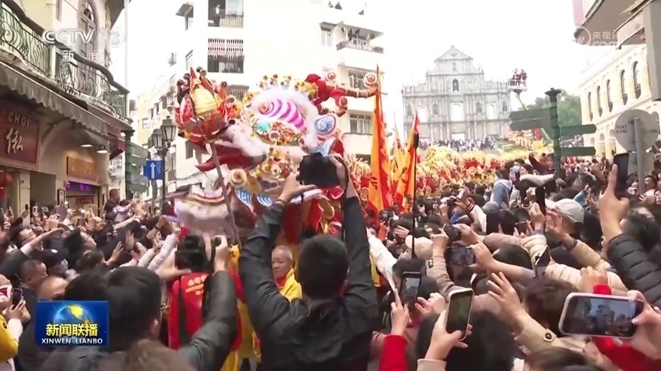 今天,澳門舉辦“歡樂春節(jié)——2024年龍騰舞躍賀新春”社區(qū)巡演活動,一條長達(dá)238米的金龍和18頭醒獅從大三巴牌坊同時出發(fā),途經(jīng)澳門多個主要景點,與眾多市民和游客一起慶祝龍年新春佳節(jié)。