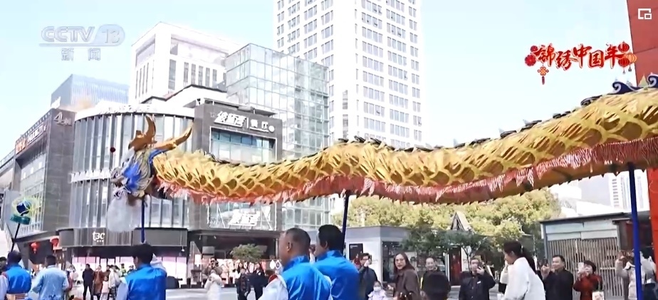 在浙江杭州,一場熱鬧的舞龍巡游活動(dòng)將全城的過年氛圍拉滿。這條50多米長的“臨安水龍”,來回穿梭于杭州各大商圈,做出“水中戲珠”“戲水搏浪”,盤、滾、游、翻等高難度動(dòng)作。最有特色的,是龍身翻舞時(shí)會(huì)帶動(dòng)藍(lán)綢翻滾,呈現(xiàn)出“金龍騰躍于碧浪中”的壯觀景象。龍身盤旋時(shí),還會(huì)秀一把噴水絕活,寓意著龍年順風(fēng)順?biāo)?br>