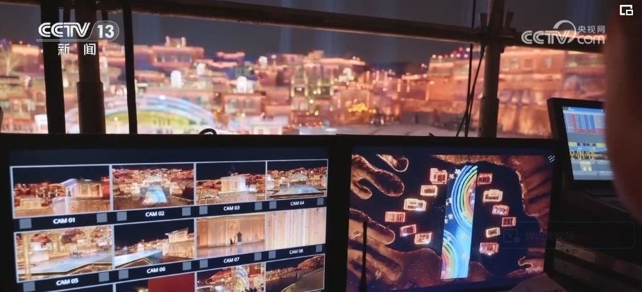 時(shí)間緊是喀什分會(huì)場(chǎng)面臨的一個(gè)很大的問題。因?yàn)闀r(shí)差原因,喀什的天黑時(shí)間將近到晚上8時(shí)。為了解決這個(gè)難題,讓舞臺(tái)呈現(xiàn)出最好的效果,導(dǎo)演組通過一套預(yù)演系統(tǒng),在白天也能調(diào)試晚上的燈光舞美效果,同時(shí),還可以通過觀眾角度、導(dǎo)播角度來實(shí)時(shí)調(diào)整舞臺(tái)上的呈現(xiàn)效果。