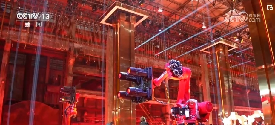 2024年中央廣播電視總臺(tái)春節(jié)聯(lián)歡晚會(huì)遼寧沈陽分會(huì)場(chǎng)上的8個(gè)重載工業(yè)機(jī)器人,原本是生產(chǎn)線上的重載工業(yè)機(jī)器人.春晚沈陽分會(huì)場(chǎng)導(dǎo)演組到達(dá)沈陽進(jìn)行第一次調(diào)研時(shí),就有了將這些機(jī)器人融入到舞臺(tái)的念頭。