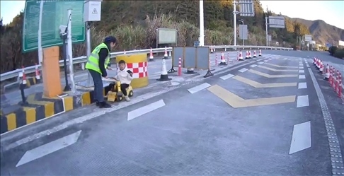 ·5歲男孩開電動玩具車上高速,被收費員及時發(fā)現(xiàn)。