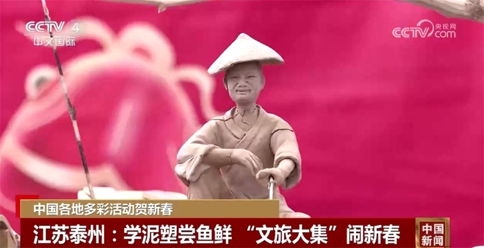 春節(jié)期間,江蘇泰州興化市舉辦了新春“文旅大集”活動(dòng)。在現(xiàn)場(chǎng),除傳統(tǒng)花船、舞龍等民俗表演外,當(dāng)?shù)啬嗨芊沁z傳承人還帶來(lái)了蟠龍、漁船、漁具等雕塑作品,游客在老師們的指導(dǎo)下也學(xué)起了雕刻泥塑。此外,大集上還能品嘗到新鮮水產(chǎn)品加工成的魚圓、魚頭湯,讓大家“年年有余”,圖個(gè)好彩頭。