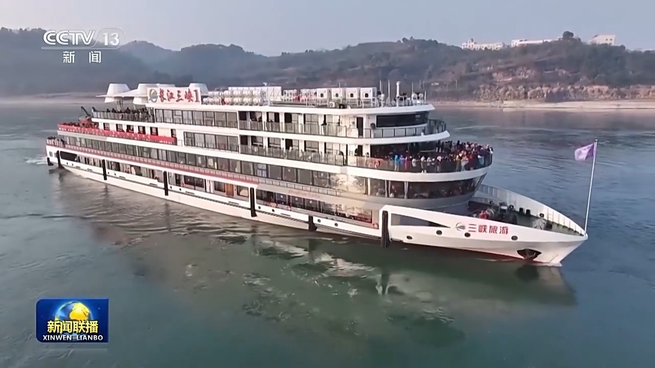 在長江上,全球載電量最大的純電動游輪“長江三峽1”號,大年初二滿載1300名游客開啟龍年首航?!傲阄廴尽⒘闩欧拧庇伍L江,成為新年新時尚。