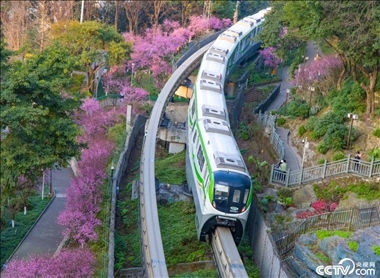 重慶:美人梅相繼綻放,列車(chē)穿行其間仿佛“開(kāi)往春天”。