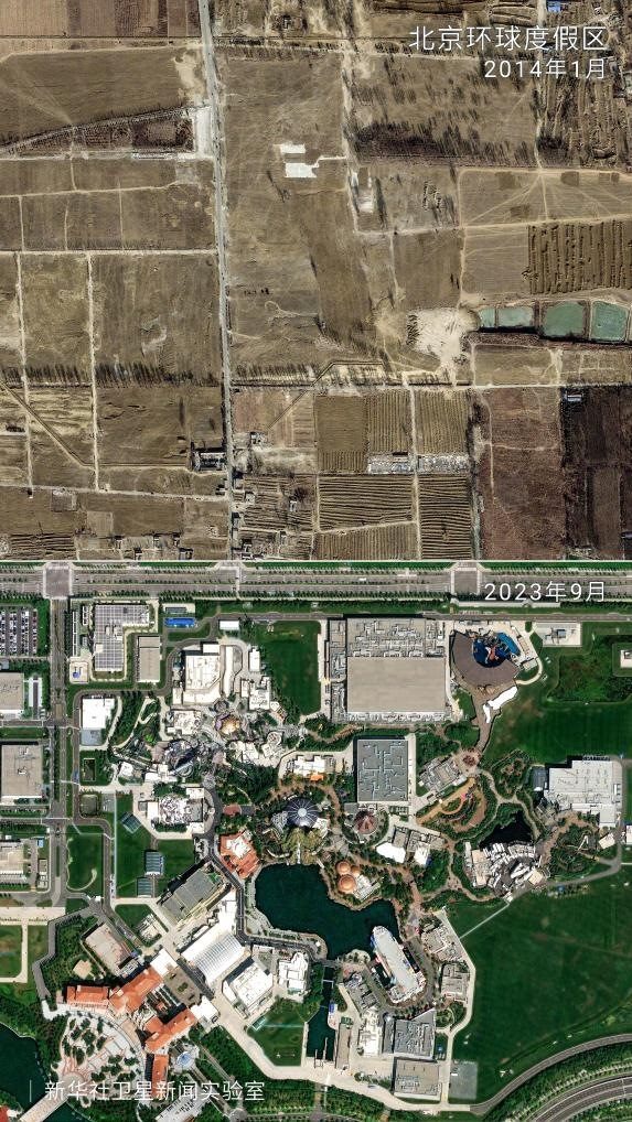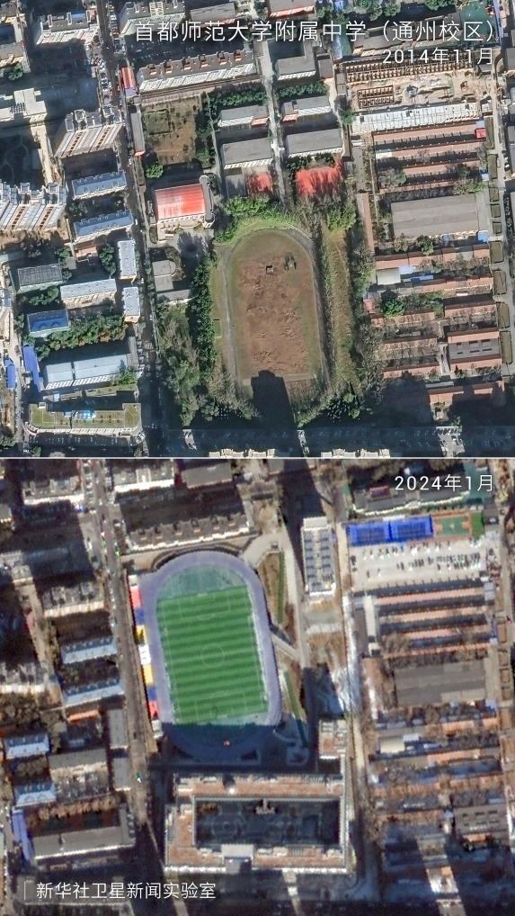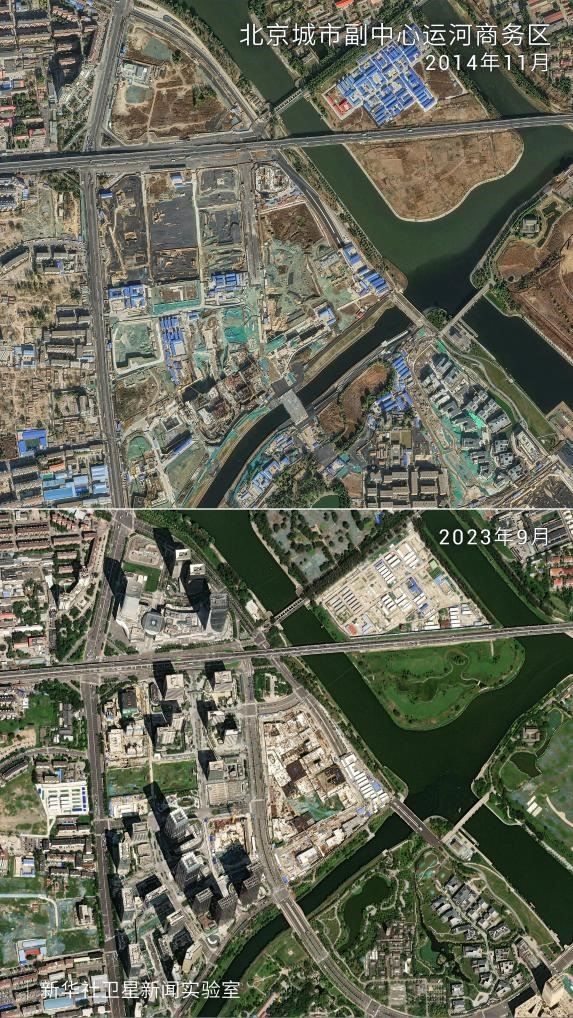 記者借助萬米高空拍攝的衛(wèi)星圖片,展現(xiàn)了“千年之城”發(fā)展的十年蝶變。