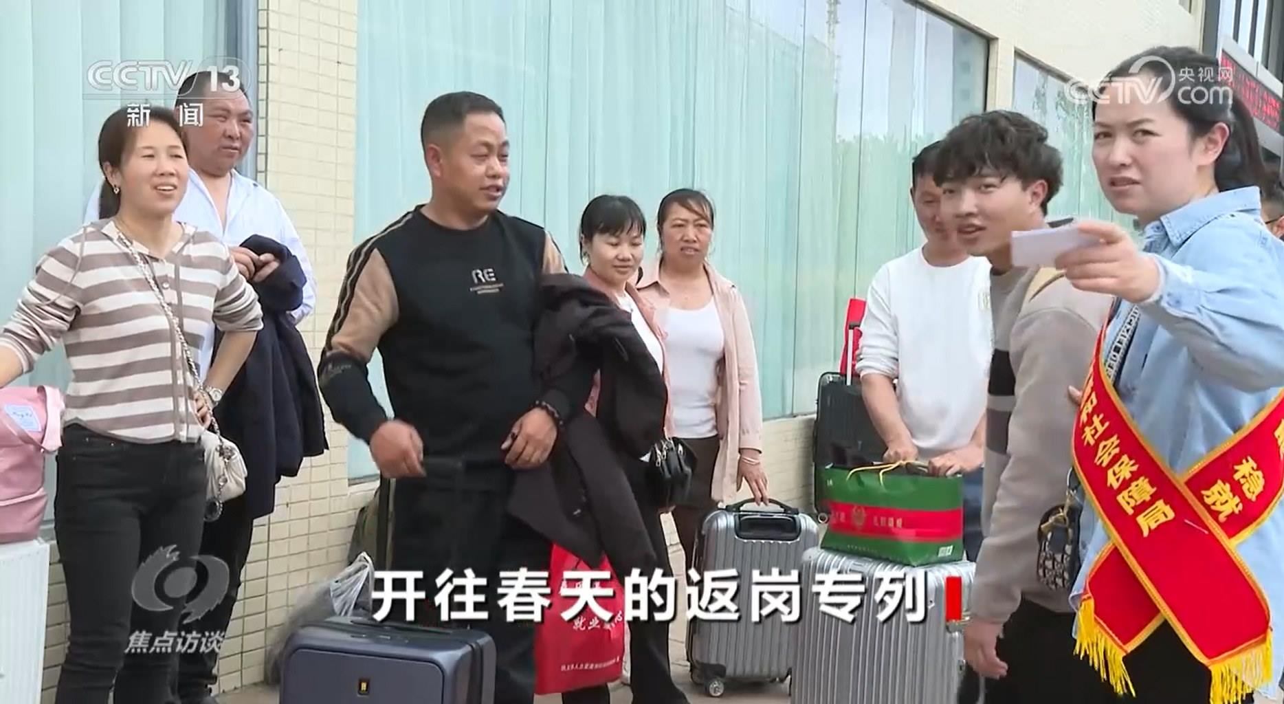 央視網(wǎng)消息(焦點(diǎn)訪談):春節(jié)假期一過,各地迎來了務(wù)工人員返崗高峰期。各地各部門組織的返崗專列、專車、專機(jī),頻繁穿梭在繁忙的交通線上。作為勞務(wù)輸出大省,貴州省跨省務(wù)工的農(nóng)村勞動(dòng)力常年動(dòng)態(tài)保持在600萬人左右,務(wù)工收入占到了農(nóng)村家庭總收入四成以上,占脫貧勞動(dòng)力家庭收入七成以上。大量的務(wù)工人員集中在節(jié)后要趕往千里之外的工作地點(diǎn),有的還要找崗位,怎么幫助他們呢?