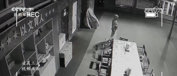 放置在哨樓的攝像機(jī),在凌晨?jī)牲c(diǎn)多的時(shí)候記錄了新兵們第一次執(zhí)勤時(shí)的狀態(tài)。